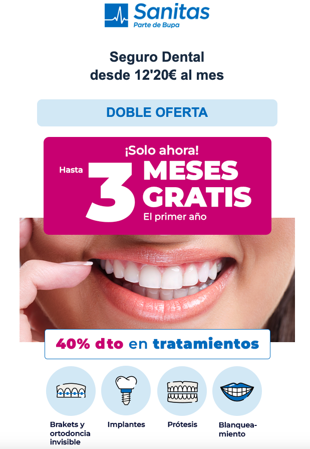 - Descuentos en tratamientos complejos (implantes, ortodoncia, etc.)