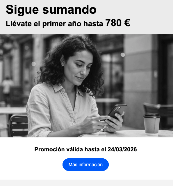 - La promoción de hasta 780 € (bonificación bienvenida + cashback + devolución de recibos) es válida solo hasta el 24/03/2026 y para nuevas cuentas Online Sabadell.