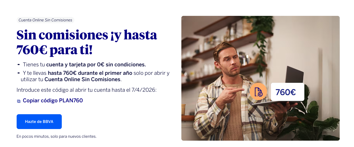- Cuenta Online sin comisiones: apertura y mantenimiento gratuitos para nuevos clientes.
